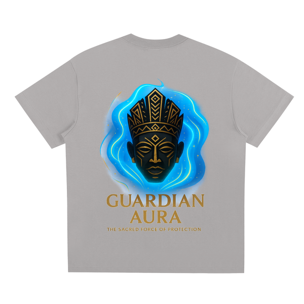 YOU HAVE CHOSEN YOUR DESTINY. The GUARDIAN AURA T-shirt from the COLLECTION AURA embodies wisdom, honor, and protection. Inspired by authentic West African mask traditions, reimagined with a regal crown-like headpiece and intricate geometric carvings, this design reflects strength guided by balance and integrity. Surrounded by a radiant sky-blue aura infused with sacred patterns, GUARDIAN AURA represents resilience with dignity, the energy of a protector who leads with both power and respect. Crafted from premium soft cotton with a unisex fit, this piece blends cultural heritage with modern luxury, making it the perfect choice for those who stand tall, lead with purpose, and wear their aura with pride.